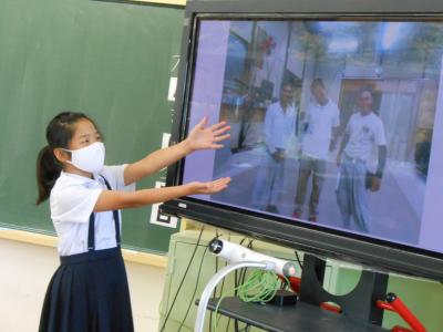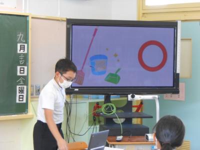 外国語の授業で、5年生は6年生に地域の身近な人をパソコンを使いながら紹介しました。