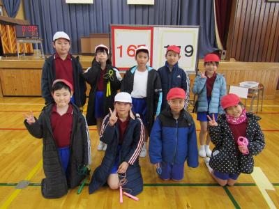 長縄跳びや8の字跳びで回し手を務めるなど大活躍した3年生のみんな