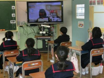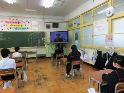 始業式は,コロナウイルス感染防止のためテレビ放送で行いました。