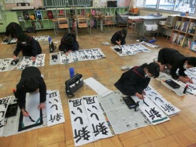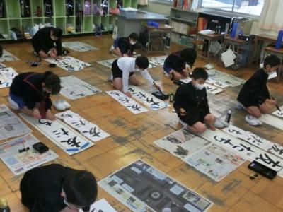始業式後は,書き初め大会です。みんな,冬休みの練習の成果がよく見える素晴らしい字でした。