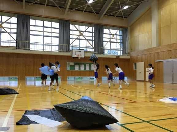 体育館で,