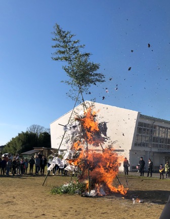 新しい年を迎え,3学期が始まりました。1月11日には,保護者の方々,地域の方々にご協力いただき,左義長を行いました。児童の書初めなどが天高く舞い上がる中,無病息災と学業成就を願いました。