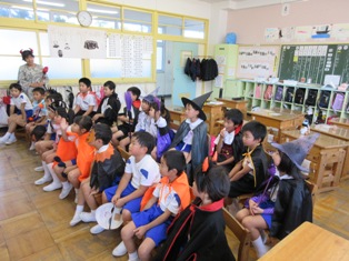 10月28日(月),1年生と一緒に外国語活動を行い,「ハロウィン」を楽しみました。児童は,思い思いの仮装で参加し,ハロウィンのキャラクターを学んだり,カルタをしたりして,外国文化に親しみました。