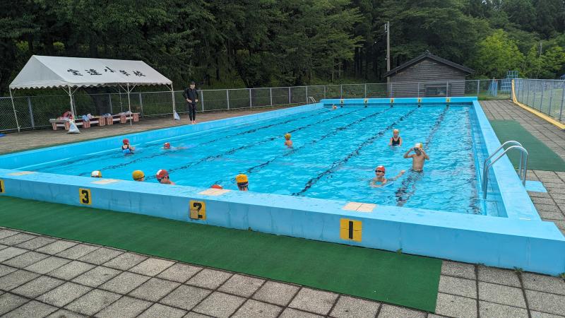 今日は大雨の影響はなく、ほとんどの学年でプールに入っていました。水泳練習もあと少しになりました。児童玄関に掲示してある「水泳学習のめあて」は達成できるでしょうか?