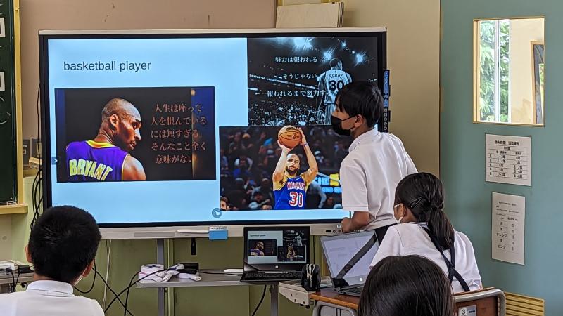 今日の朝自習の時間に、5年生が国語で取り組んだ報告文の発表をしました。それぞれのテーマについて、調べたことをスライドにまとめて発表してくれました。