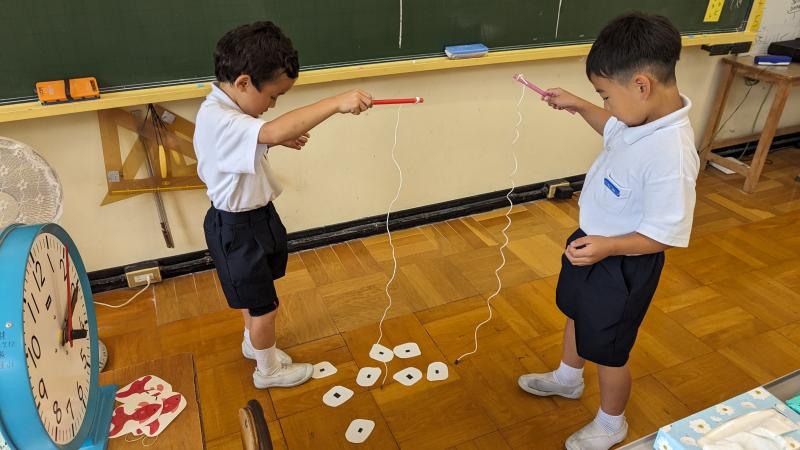 そよかぜ担任の先生がお休みだったので、昼休みに何をして過ごそうか相談していたところ、1年の児童が遊びに来てくれました。2人で磁石を使った釣りのゲームをして楽しく遊ぶことができました。とても爽やかな場面でした。