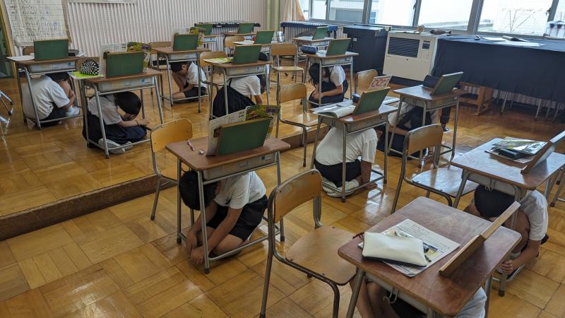 本日、県民一斉防災訓練「シェイクアウトいしかわ」に参加しました。11:00の放送に合わせ、自分の身を守る行動をとる訓練を行いました。