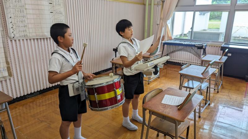 オーディションも終わり、宝達っ子鼓笛隊が新しい編制でスタートしました。この日は、4年生が昼休みに自主練習をしていました。