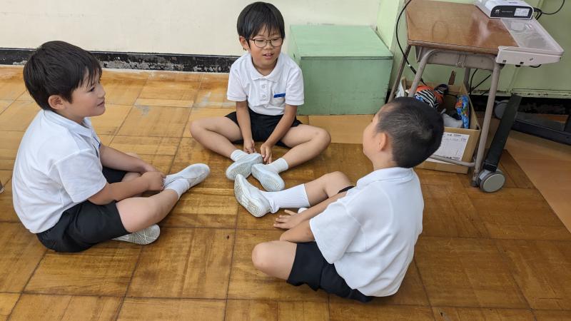 本校では、毎週対話トレーニングに取り組んでいます。子どもたちの関心・意欲が高まるようなテーマについて、意見を出し合います。話す側もきく側も相手を意識した態度を心がけます。