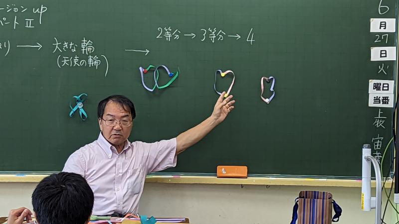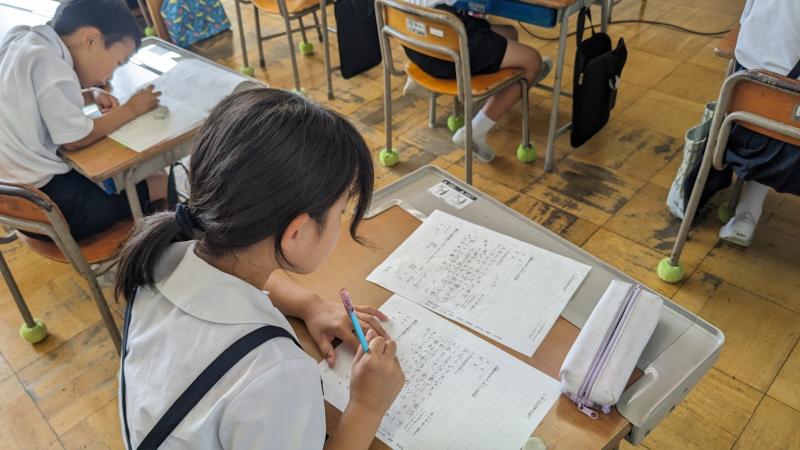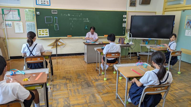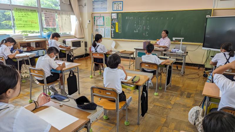 今年も中西先生の算数教室があります。いつもゲーム感覚で楽しく算数を指導していただいています。今日はその第1回目。昨年度の活動をさらにバージョンアップ。想像力を働かせて答えを予想しているときは、脳がフル回転しています。