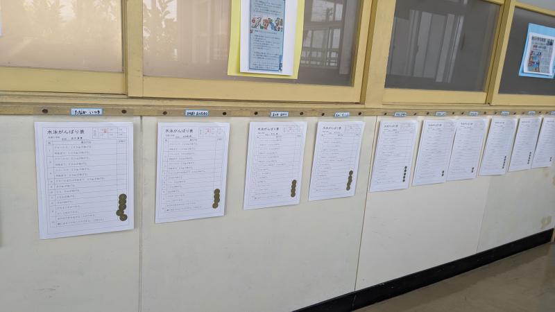 お天気の良い日は、できるだけプールに入る時間を取るようにしています。限られた時間に集中して取り組むことは大切です。子どもたちは自分のめあてをしっかり持って水泳の練習をしています。