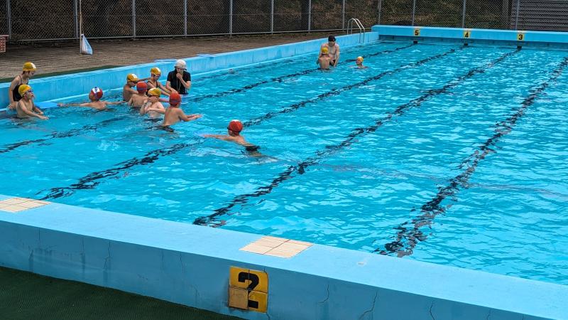 少し暑いですが、水泳の授業にはちょうどいいくらいです。1年・そよかぜの8名の子どもたちは元気に水泳練習に取り組んでいます。みんな「けのび」が上手になりました。