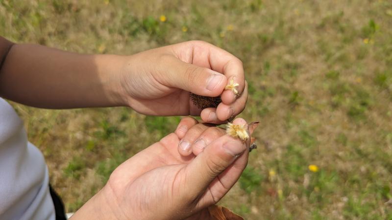 運動場脇にある植物の実です。中に綿毛があるのですが、3年生が教えてくれました。さすが宝達っ子、自然に詳しい!