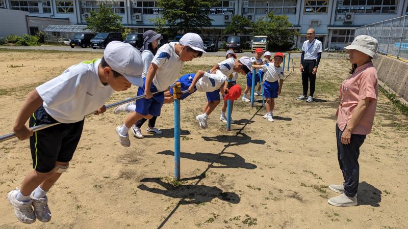 もうすぐ水泳学習が始まりますが、それまでは運動場で勉強です。今日は、3年・ひだまりの子どもたちが鉄棒練習に取り組んでいました。とびあがり、ふとん、ツバメ、逆上がりなどを練習していました。逆上がりができる子はまだ少ないので、昼休みにも練習するようです。