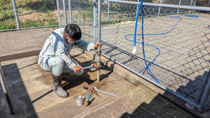 プールのシャワーの水道管が、破裂し水漏れしていました。おそらく前冬のときに凍結し水道管に亀裂が入ったのではないかと思われます。濱谷さんにすぐに直していただき、21日の水泳学習に影響はありませんでした。濱谷さん、いつもお世話になっています。ありがとうございます。