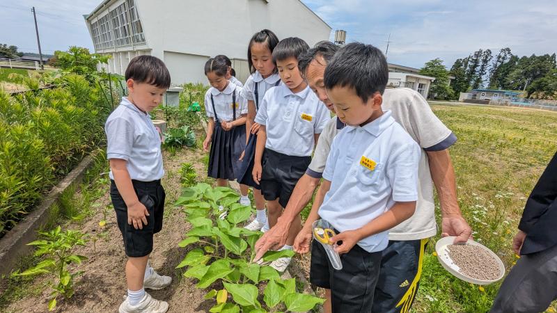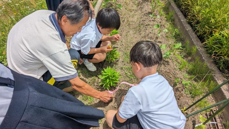 理科の学習で育てている植物を毎日交代でお世話しています。お陰でとても大きく成長しています。中村先生からのご指導で観察も欠かさず行っています。