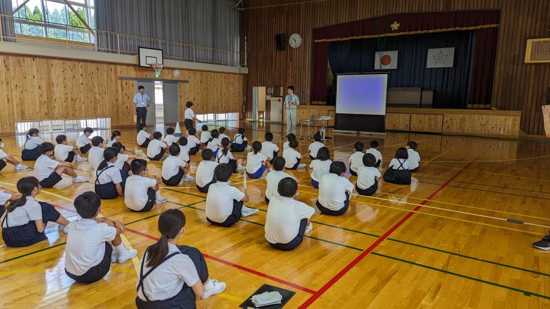 中能登土木事務所の職員2名を講師に迎え、「土砂災害出前講座」が開催されました。本校の校区には、「土砂災害警戒区域」がありますので、毎年土砂災害についての学習は欠かせません。講話を聞くだけでなく、縦割り班でのワークショップ型の活動を通して、しっかりと話し合うことができました。