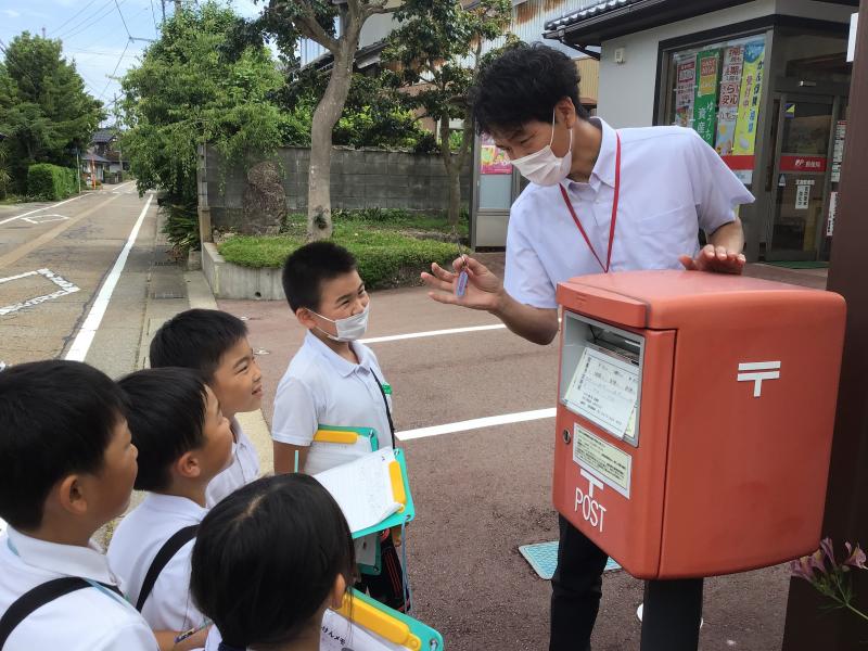 2年生が生活科で「郵便局見学」に行ってきました。宝達郵便局は学校からとても近いところにあるので、歩いていくことができます。