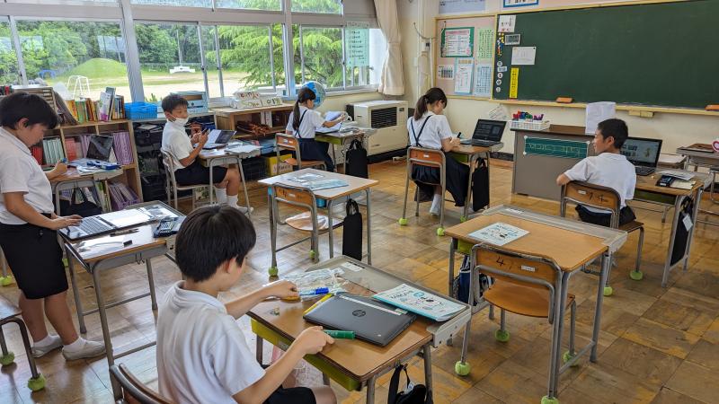 4年生が水の学習のまとめで、Chromebookを使ったスライド作りに取り組んでいます。写真を取り込んだり、アニメーションを付けたりと色々工夫が見られます。完成が楽しみですね。