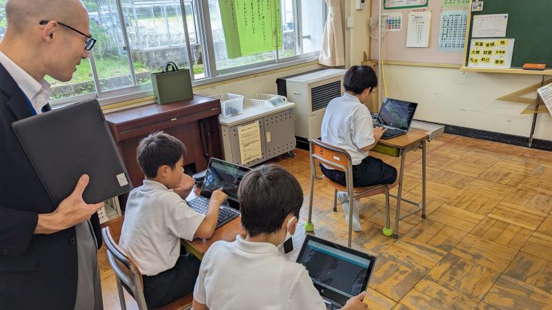 週末の宿題にChromebookを使った課題を出すことがあります。ドリルパークで練習問題で基礎基本の力を身に付けます。この日は、井上先生が間違ったところをしっかり直すことの大切さについて指導してくださいました。ご家庭でも、間違ったところを直してあるかお子様に聞いてあげてください。