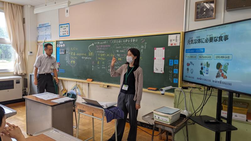 宝達中学校の栄養職員の中村先生に来ていただき、食に関する授業をしていただきました。事前アンケートをもとに、栄養バランスの取れた食事の大切さについて教えていただきました。