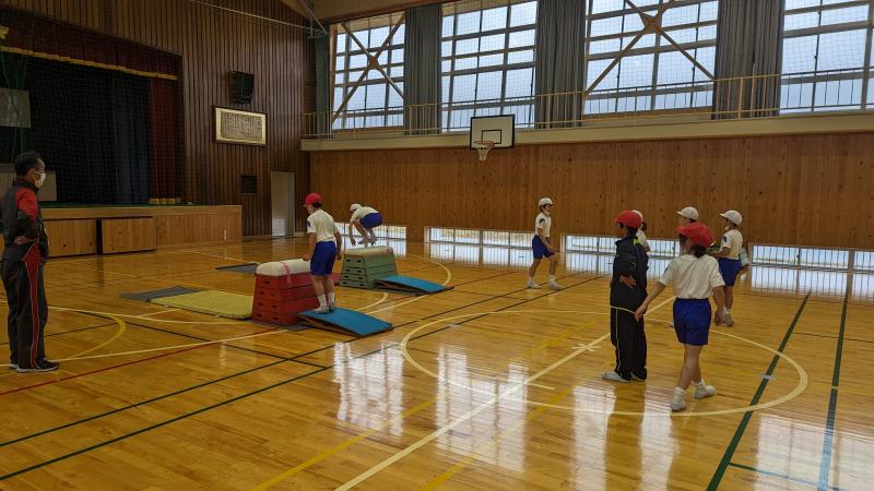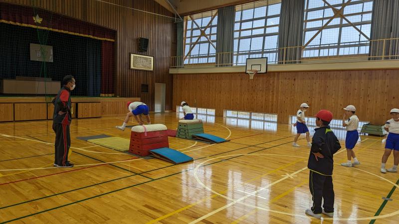 4年生が跳び箱運動に取り組んでいました。この日は、横置き5段の「開脚跳び」に加えて「閉脚跳び」にも挑戦していました。「閉脚飛び」はなかなか難しい技ですが、どの子も意欲的に跳んでいました。