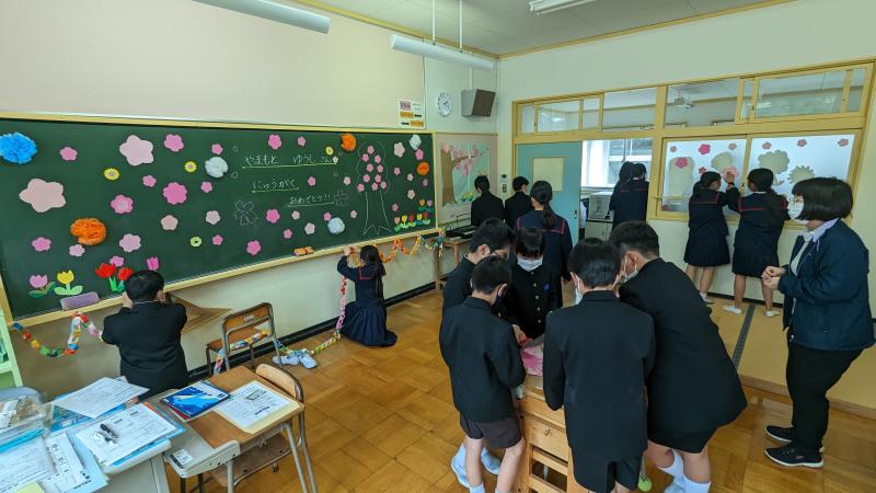 新5・6年生が、明日の入学式準備に来てくれました。ありがとう!