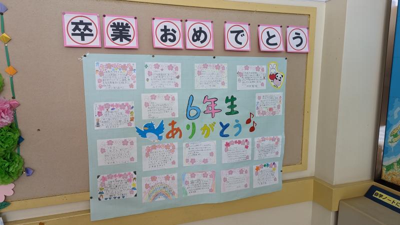 17名の方々からの祝電などのメッセージをいただきました。児童玄関に掲示してありますので、卒業式当日ご覧ください。
