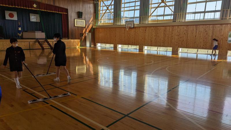 卒業式まであと3日となった6年生が校内の掃除をしてくれました。感謝の気持ちを込めて丁寧に掃除します。