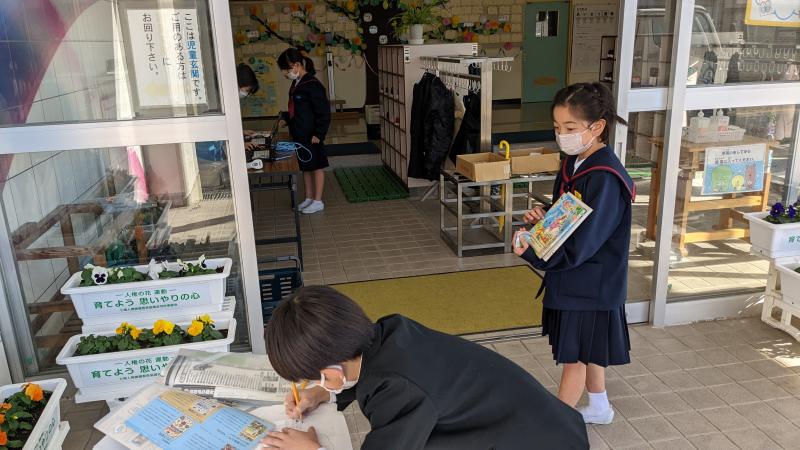 今日もたくさんの子どもたちが借りに来ました。わかば号が来るのを毎回楽しみにしています。