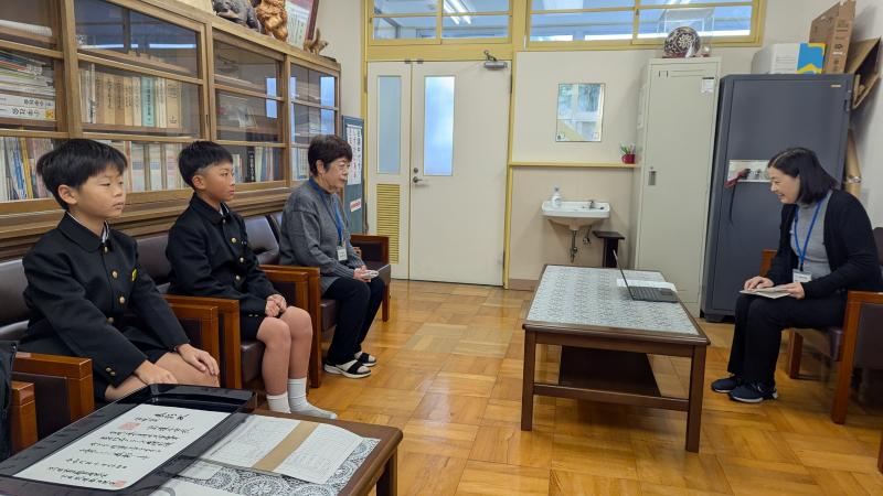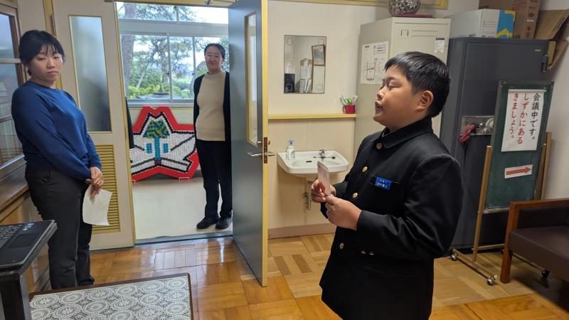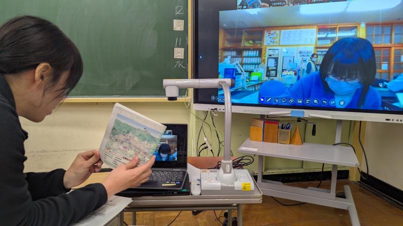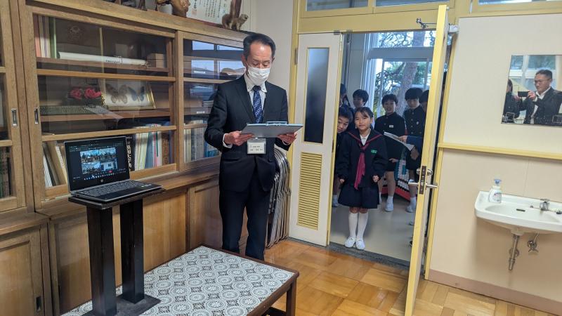 本町は岐阜県下呂市と姉妹都市提携を結んでいます。この度、下呂市の3小学校(宮田小・馬瀬小・上原小)と本校の四校で遠隔授業による授業交流会を開催することになりました。今日は、Zoomによるリモート会議で打ち合わせを行いました。本校からは、校長先生と6年担任の越後先生の2名が出席いたしました。