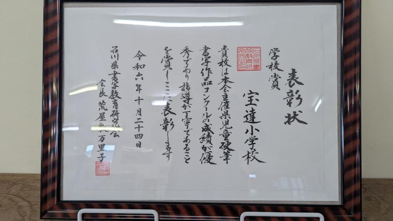 今年度の「県児童硬筆書写作品コンクール」で、本校が学校賞をいただきました。子どもたちはもちろん、先生方の指導も評価されました。これを励みにもっと字がうまくなってほしいと思います。