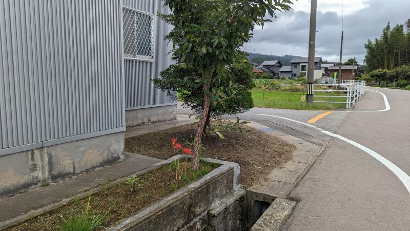 春に体育館横の三叉路の植え込みの草刈りをしてあったのですが、夏から秋にかけて春以上に雑草が伸びていました。雑草で見通しが悪く危険ですので、再び刈り取りました。これで通行する児童からも通行車両からも見通しが良くなったと思います。