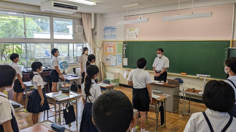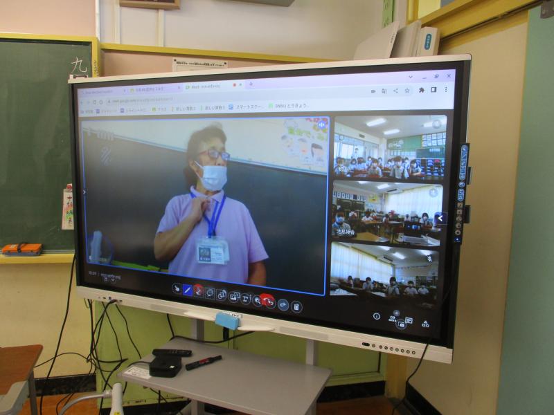 3年生は、2学期の総合的な学習の時間に「アサギマダラ」について学習することになっています。今年は、3年後に統合することになっている押水地区3校で交流学習を行うことになりました。今日は、3校の3年生が講師の先生からリモートでお話を聞く授業がありました。どの学校の子どもも真剣にお話を聞いていました。マーキング活動も合同で行う予定です。