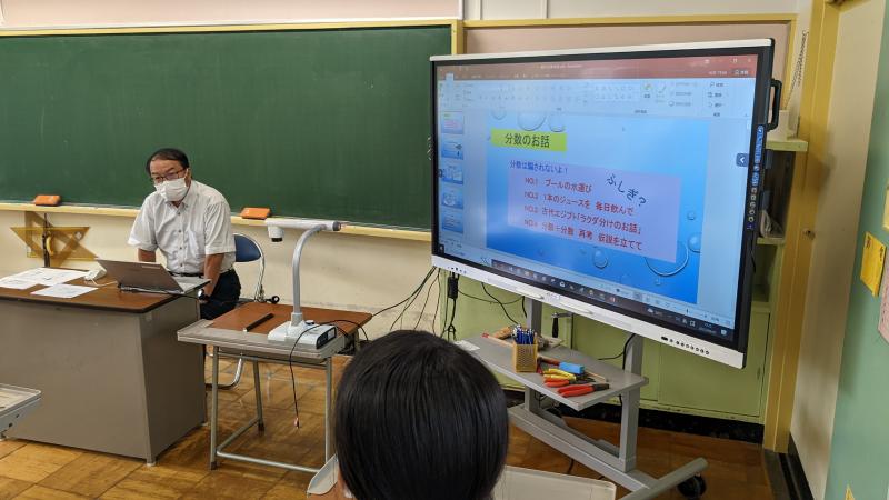 1学期に続き2回めの、中西先生の算数教室がありました。今回も、分数をテーマに、子どもたちから「不思議!どうして?」の声が上がるとても素敵な授業でした。
