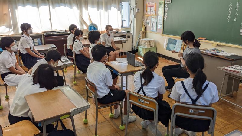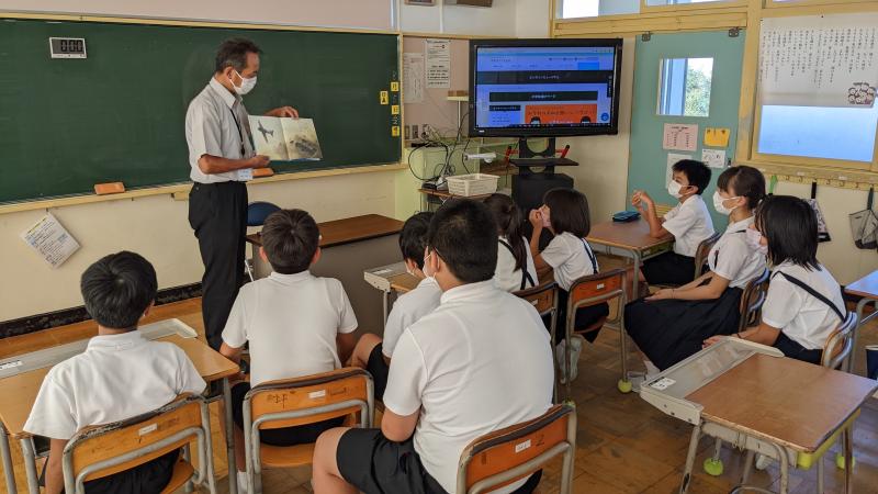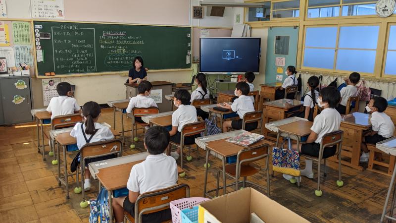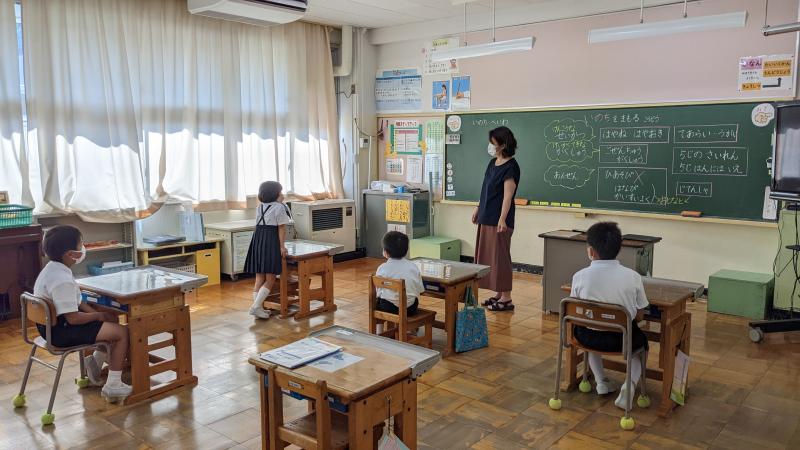 昨日の大雨が嘘のように大変良い天気になりました。今日は全校登校日でしたが、子どもたちは元気に登校してきました。全校集会は、校長室と各教室をChromebookを使ってつなぎ、校長先生のお話、池島先生の「平和」についてのお話を聞きました。その後、各教室で「平和」に関する読み聞かせがありました。どの子も真剣にお話を聞く様子が見られました。このあとは、夏休みの宿題チェックや読書感想文の指導、水泳学習が予定されています。