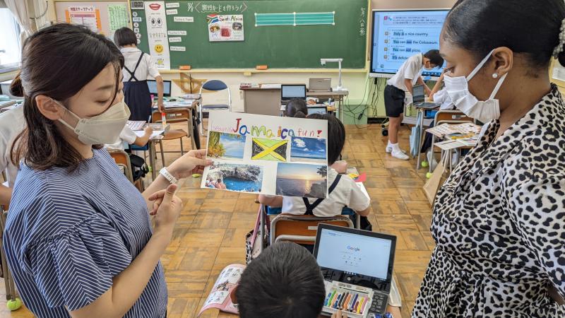 6年生が、外国語の時間に旅行カードを作成しました。それぞれのお気に入りの国の特徴をカードにまとめ紹介します。中には、ALTのAmoyさんの母国Jamaicaを取り上げる児童もいました。