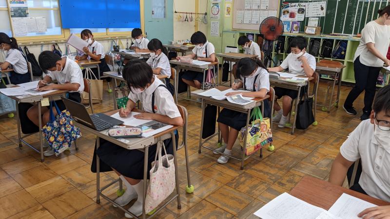 5・6年の宿泊体験学習が10日後に迫ってきました。5・6年生は事前学習を行っています。班毎に今回の学習の目標について話し合いましたが、この日はそれを発表し合いました。新型コロナウイルス感染症の影響で活動に制限はありますが、充実した活動になるといいなと思います。