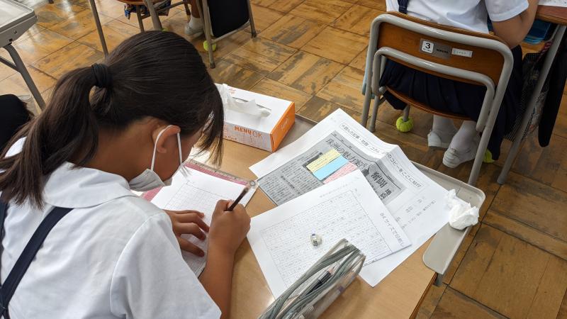 北國新聞の「新聞読んで」コンクールに応募します。それぞれの児童が興味をもった記事をテーマに、自分の考えをまとめます。流石6年生、選ぶ新聞の内容が違います。