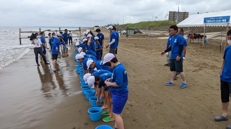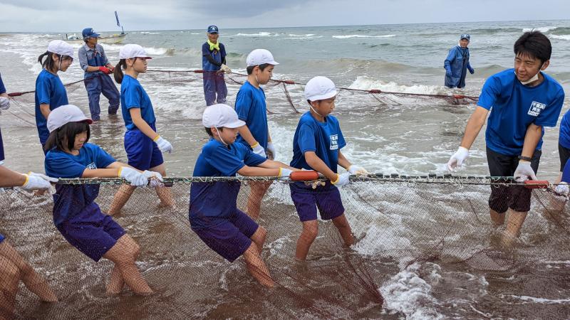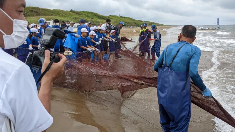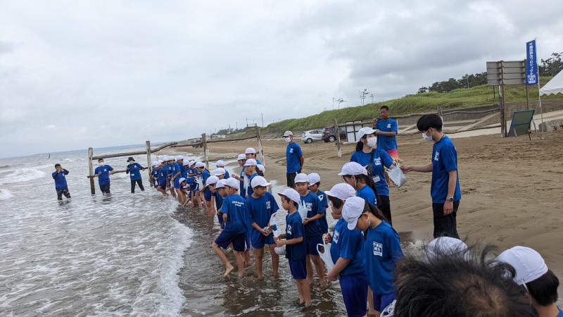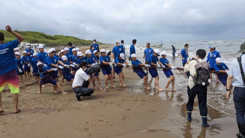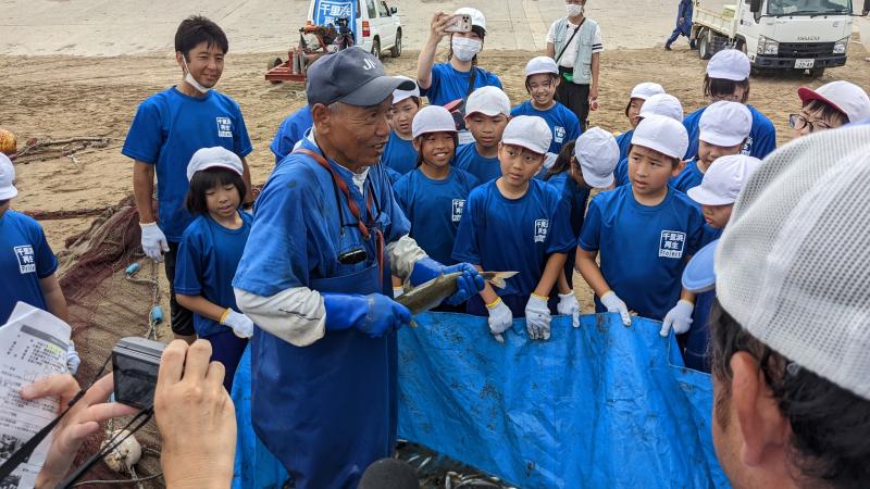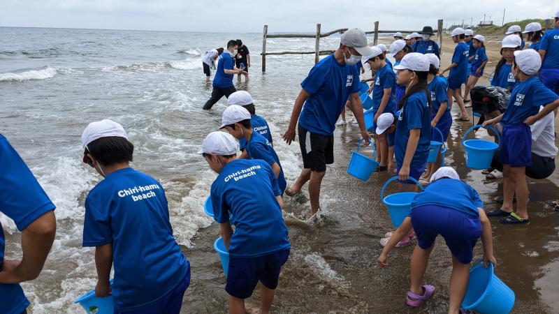 石川県・宝達志水町・羽咋市が参加する「千里浜再生プロジェクト」のプログラム「千里浜なぎさふれあい教室」に、本校4〜6年生児童が参加しました。近年はコロナ禍のため開催できなかったようで、3年ぶりの開催だそうです。地引網体験、一人一砂運動、ヒラメの稚魚放流体験の活動を行いました。子どもたちの目の輝きを見ていると、新聞で見たり聞いたりしたこと、学校での座学で学んだことはあっても、実際に現地で体験することにはそれ以上の大きな意味があると感じました。活動の様子は、新聞社各社のほか、宝達志水町ケーブルテレビ、NHK金沢の取材がありましたので、そちらもご覧ください。