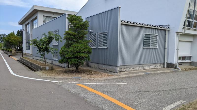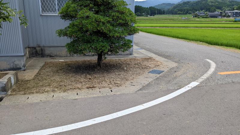 体育館側の三叉路が、雑草で見通しが悪く、登校する児童や車両の交通に支障がありましたので、草刈りを行いました。また、木の枝も一部伐採しました。これで安心です。でも、必ず一時停止して安全確認してくださいね。