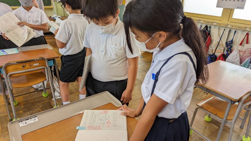 6月に、「お寺探検隊」「駐在所探検隊」「郵便局探検隊」の3グループにわかれ実際に訪問し、見学やインタビューをさせていただきました。お世話になった地域の皆さん、本当にありがとうございました。