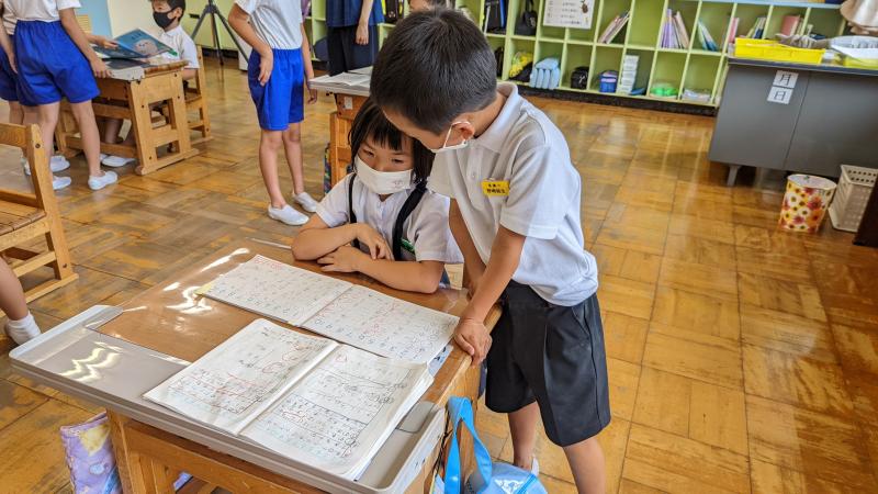 宝達っ子ノート展覧会がありました。教科や自学ノートのまとめ方について、低・中・高学年毎にペアになり、自分のノートの工夫したところや相手のノートの良いところを伝え合いました。週末の家庭学習がどのように変化するかとても楽しみです。