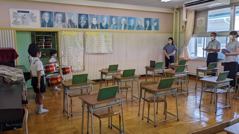 5年生と4年生が、今週末の鼓笛のオーディションに向けて最後の練習にがんばっています。6年生が見守る中、これまでの練習の成果を披露し、チェックしてもらっています。頼もしい先輩たちです。ありがとうございます。
