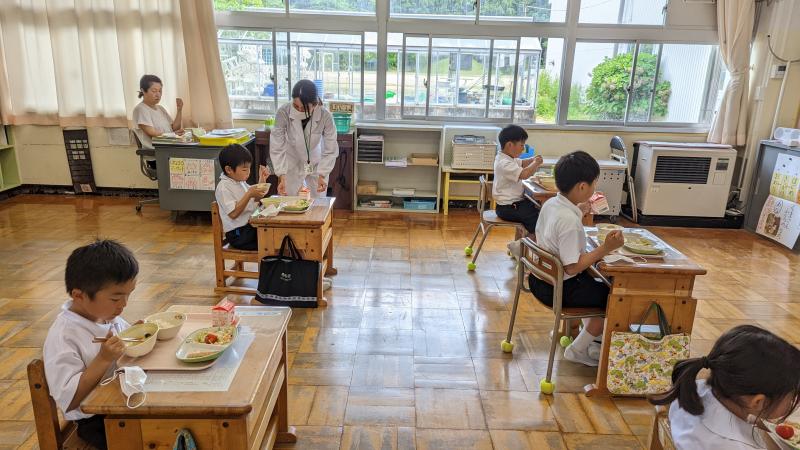 今日は、宝達中の中村栄養職員の訪問日でした。各クラスをまわって、正しいマナーで給食を食べているか点検していただきました。