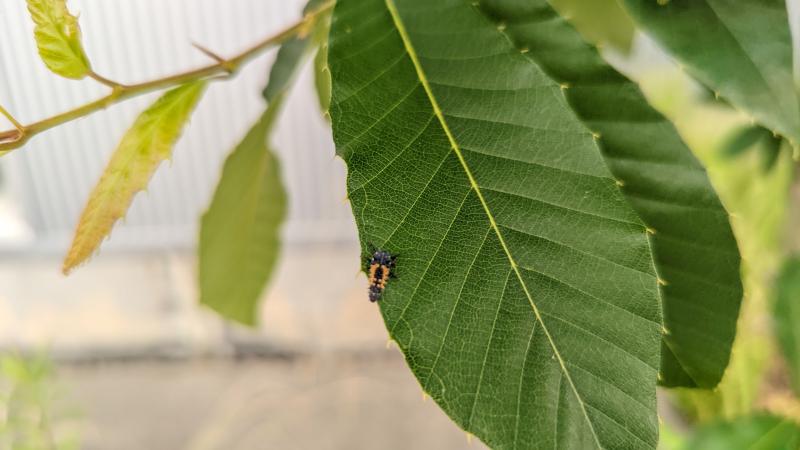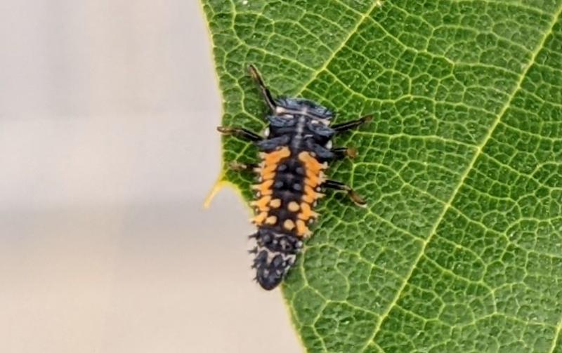 何と、「テントウムシ」の幼虫ですよ。「テントウムシ」は正式には「ナミテントウ」といいます。