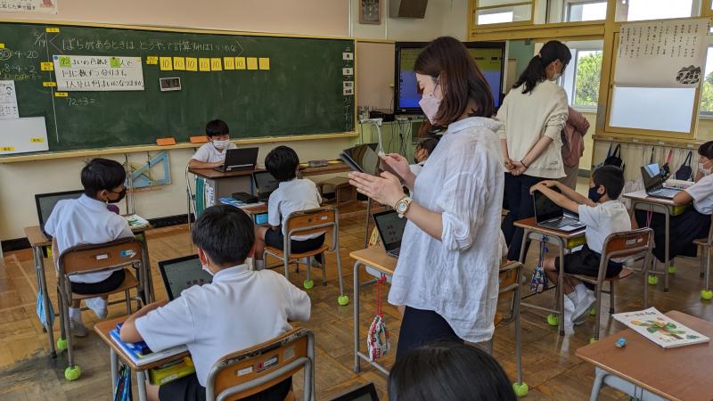 今週から来週にかけての「ふらっと参観」では、先生方が授業の相互参観を行っています。お互いの授業を見合って意見交換し、授業改善に取り組んでいます。