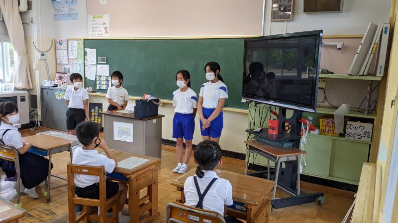 委員会活動が先週ありました。会議で決まったことを、低学年に伝えています。低学年の児童にも分かりやすく説明していることを意識しています。