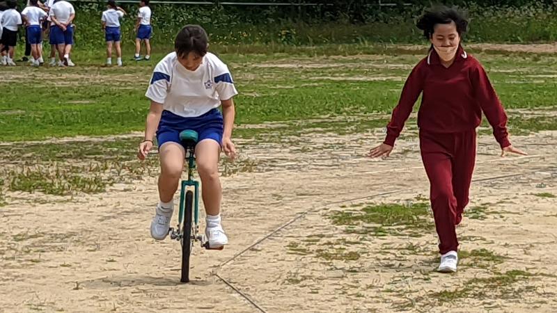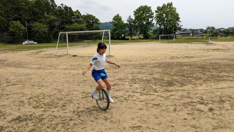 今日はお天気が良かったので、昼休みは外で元気に身体を動かします。5年生は、ユニサイクルが得意な子が多く、今日はグラウンドのトラック1週に挑戦しました。2人が見事成功!バランス力、脚力、集中力がつくと思います。奥では、例の「投力強化マシーン」で投力を鍛えています。今日は行列でした。