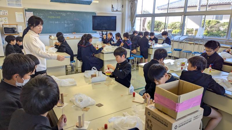 宝達小学校は「緑の少年団」に加入しています。今日は間伐材を使った「リュールシロフォン」づくりに挑戦しました。